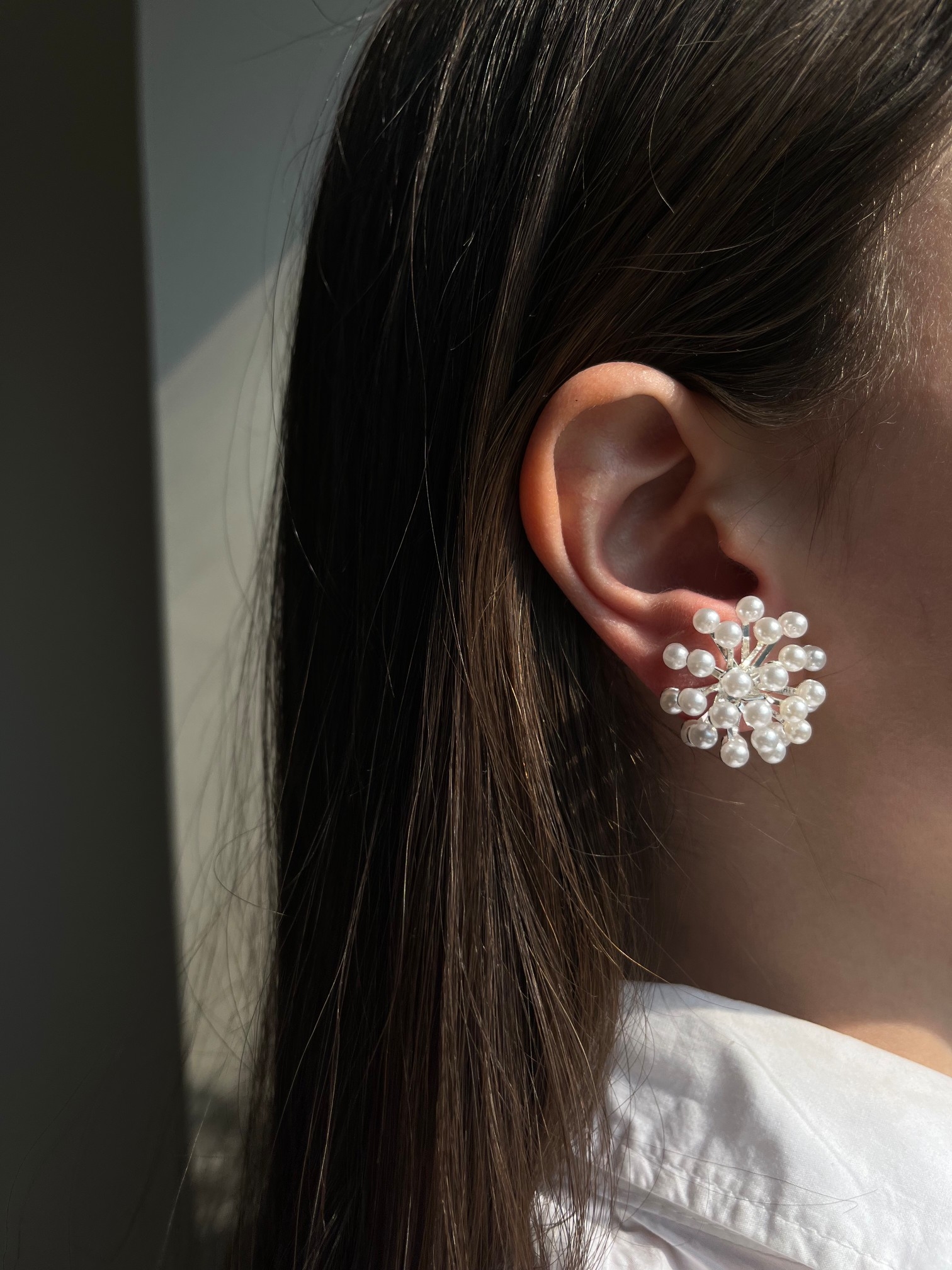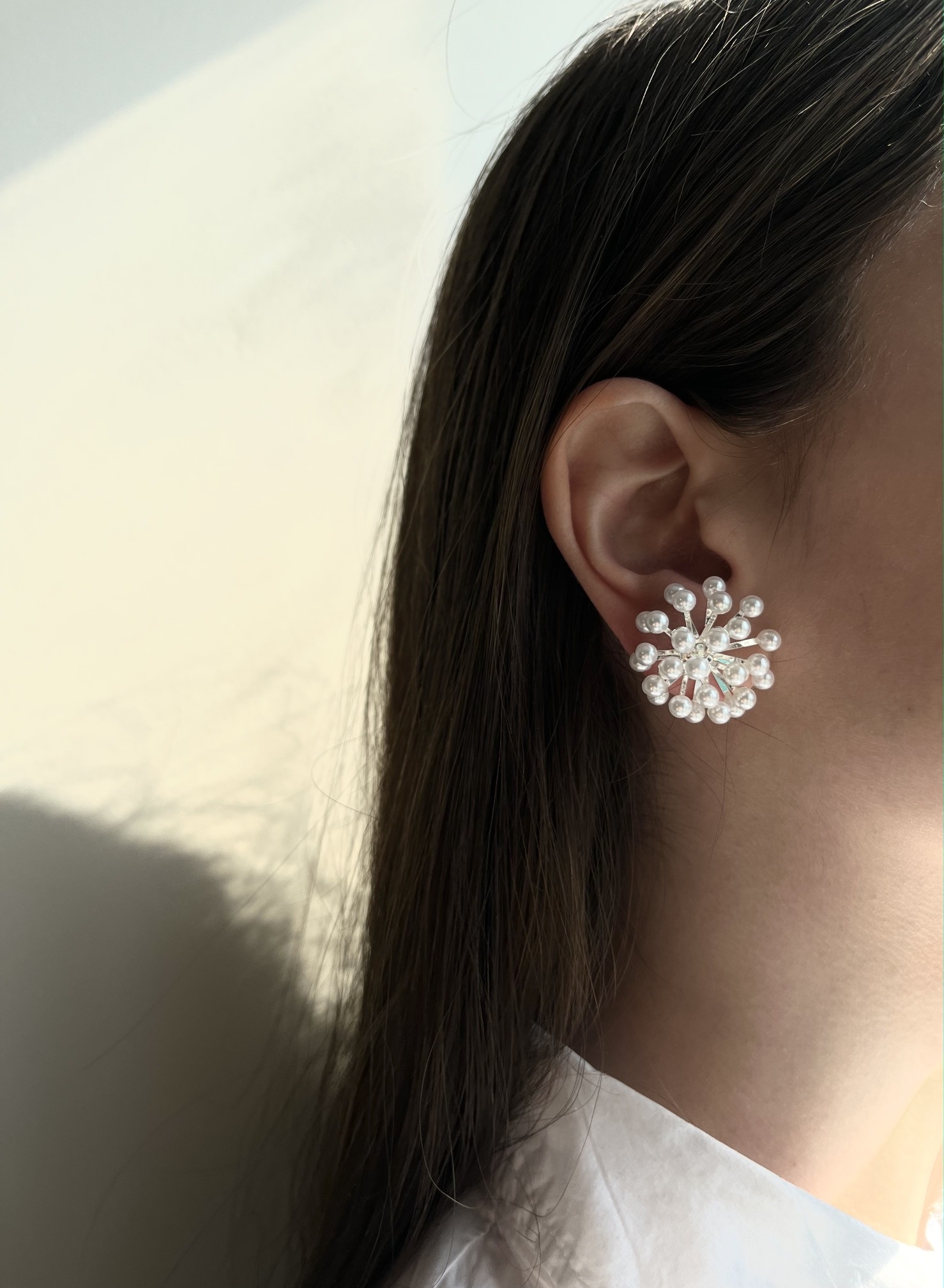 گوشواره مدل قاصدک با مروارید ظریف، موجود در دو رنگ طلایی و نقرهای.