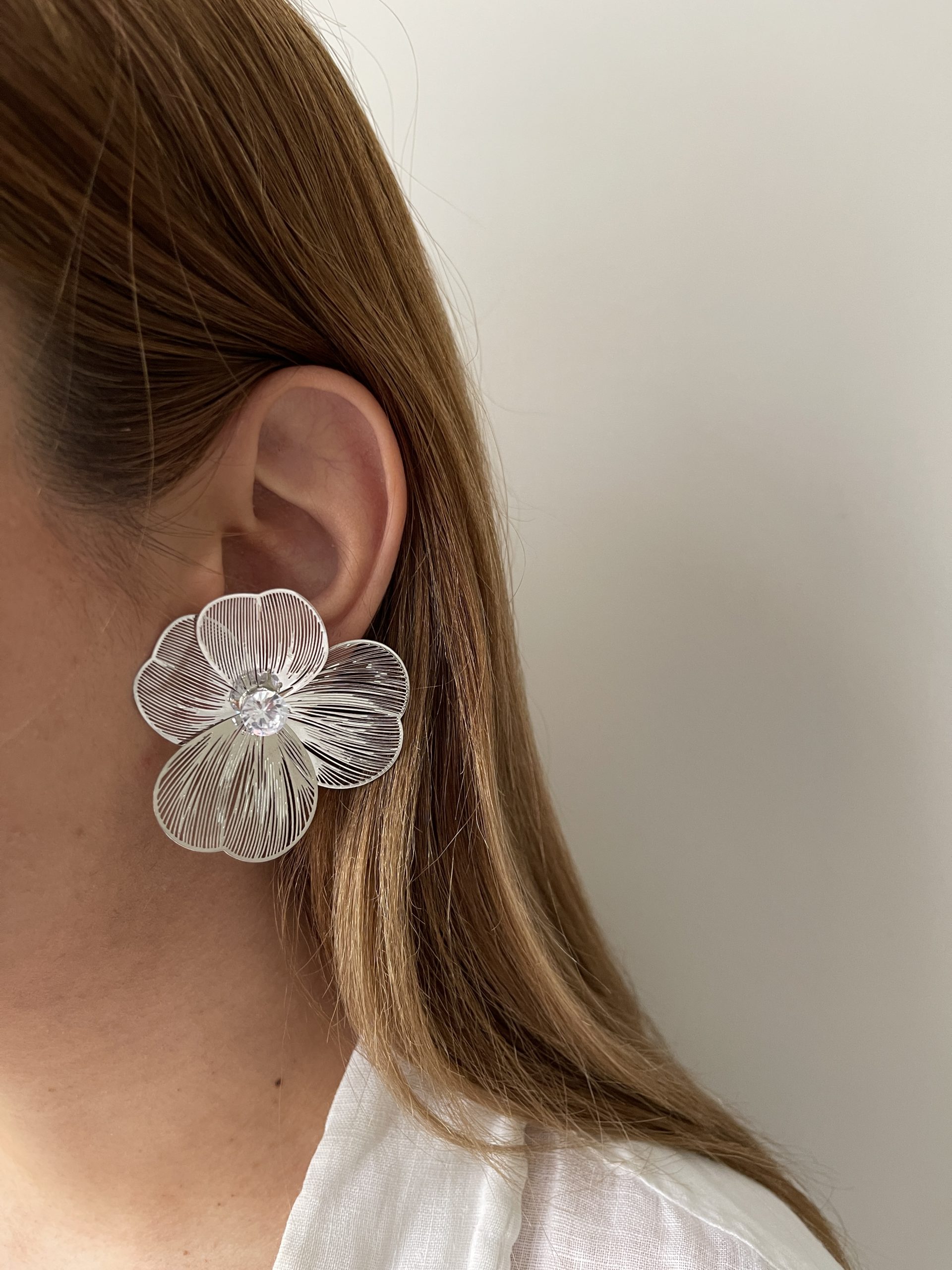 این گوشوارهی گل بزرگ نقرهای، همون ظرافتیـه که نگاهها رو متوقف میکنه؛